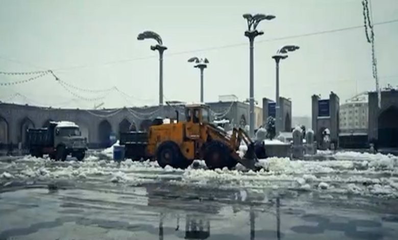 تصاویر جالب از برف‌روبی حرم امام رضا(ع) + فیلم